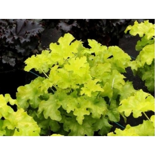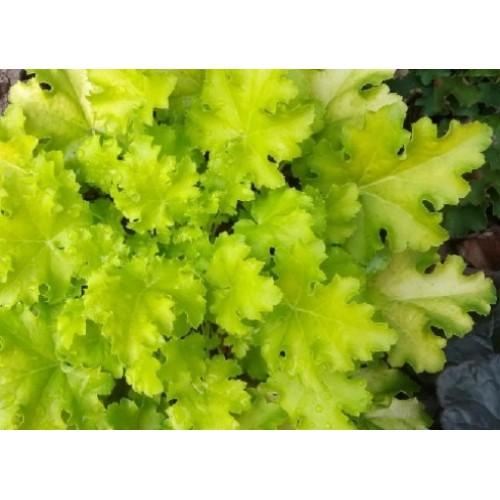 Незаменимая гейхера для подбивки темных или ярко-окрашенных сортов. Легко размножается и энергично нарастает. Листья гофрированные, лаймово-желтого оттенка. Летом цвет меняется на ярко-лимонный.